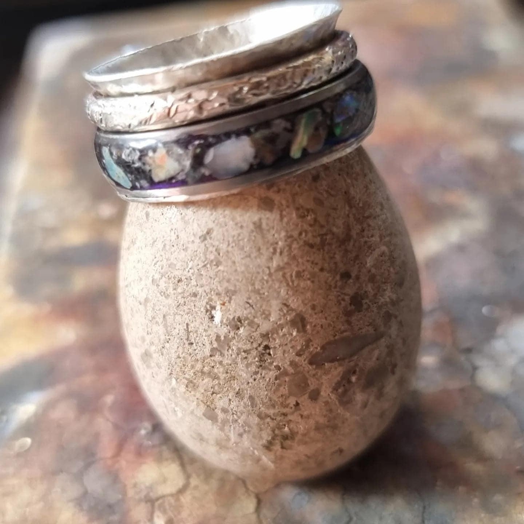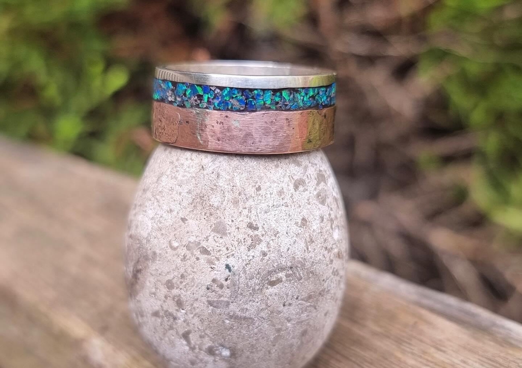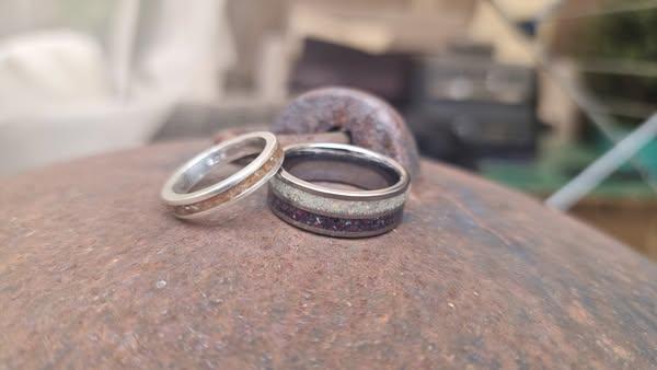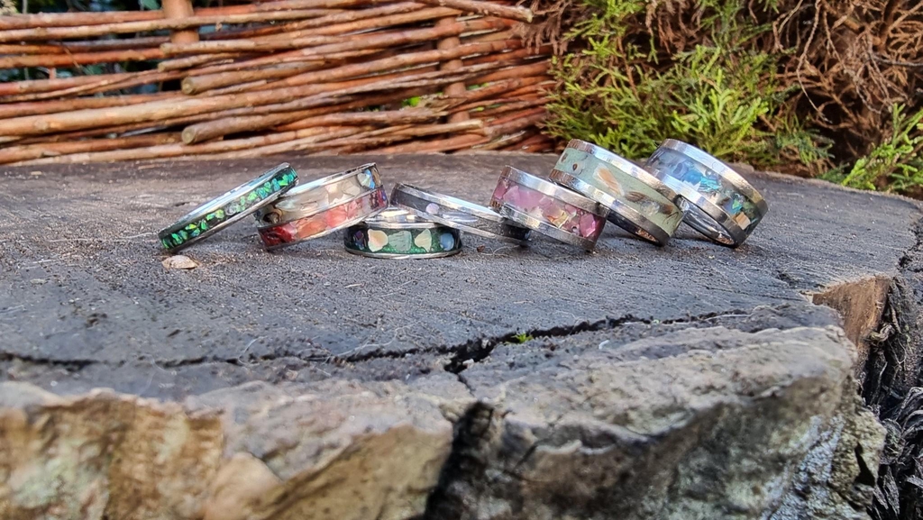 We offer a variety of stunning options for crafting cremation ashes rings tailored to your preferences. With ring blanks made from high-quality materials like ceramic, silver, titanium, and stainless steel, you can select a style that resonates with you. Our range includes different colors of crushed opal, which adds a beautiful touch to each piece. Additionally, we provide engraving services for most of our ring designs, allowing you to add a personal message or significant date, making your ring an even more poignant keepsake.
